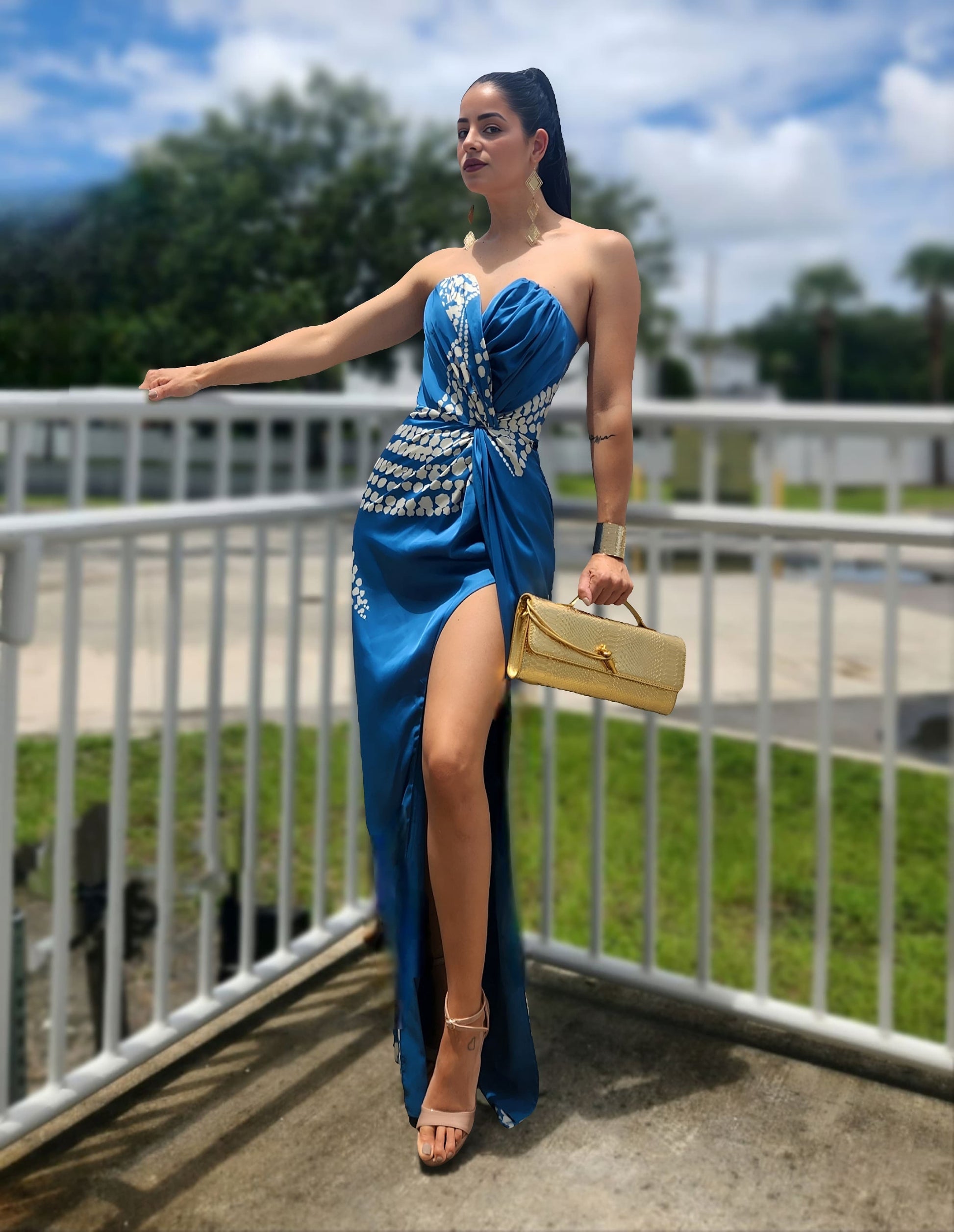 A sweetheart neckline never goes out of style. This stunning maxi dress features a flattering silhouette with a high slit for just the right touch of drama. Perfect for a wedding guest look or a romantic cruise dinner, it’s a go-to piece for your next special occasion.